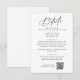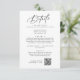 Esta elegante tarjeta de detalles bodas en blanco y negro es perfecta para un boda sencillo. El moderno diseño minimalista presenta una caligrafía romántica blanca y negra intemporal con un estilo bohemio de cuento de hadas. Personalice su tarjeta de detalles de la invitación a la boda con la dirección del sitio web del boda y el código QR para que los huéspedes puedan recibir RSVP en línea fácilmente.