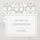 Sencillo y formal marco rústico vintage con letras de estilo tradicional en tonos grises y verdes, y un espléndido patrón vintage con monograma en la parte trasera, elegante y clásico, ideal para bodas vintage, boda clásico y boda a la antigua. El color de fondo blanco se puede cambiar para que coincida con el tema de tu boda, sólo tienes que hacer clic en el botón "Personalizar" y luego editar el color en la sección "Color de fondo impreso". Personalizar con cualquier información que quieras que tu invitado sepa. Vea todas las piezas coincidentes de esta colección de "Bodas clásicas" a continuación.