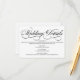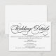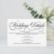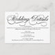 Una tarjeta de detalles de boda blanco formal y elegante con guión de caligrafía negra.