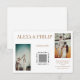 Cree una impresión duradera con esta tarjeta de gabinete boda de inspiración vintage, que presenta un diseño cálido y nostálgico. El diseño resalta tus momentos más apreciados a través de un collage de cuatro fotos personalizadas, enmarcadas elegantemente para mostrar el romanticismo de tu día especial. La refinada tipografía combina un audaz tipo de letra serif para el título "EL boda" y un suave y delicado guión para los nombres de la pareja y los detalles del evento, logrando un equilibrio entre sofisticación moderna y encanto intemporal. Esta invitación combina perfectamente la narración personal con un diseño elegante, lo que lo hace ideal para parejas que quieren compartir su historia de amor con estilo. M005