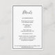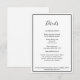 Esta elegante y moderna tarjeta de gabinete de detalles bodas es perfecta para su moderno boda minimalista. Este diseño presenta una caligrafía simple negra con un fondo blanco neutro para que se ajuste a su clásico boda tradicional o minimalista boda boho en primavera, verano, otoño o invierno. Por favor, siéntase libre de contactarnos con cualquier pregunta sobre este diseño.