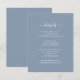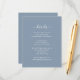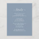 Proporcione a su huésped más información sobre estas elegantes tarjetas de diseño azul polvoriento. Personaliza fácilmente en línea. Elementos coincidentes disponibles para complementar sus polvorientas tarjetas de gabinete de boda azul.