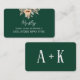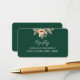 Tarjeta de información del registro de bodas de color verde oscuro con flores de albaricoque acuarela y follaje de jardín. Un diseño botánico contemporáneo, sencillo pero elegante, inspirado en el estilo boho vintage.