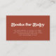 Libros para tarjeta de bebé. Un tema de moda retro: adoptar este diseño tipográfico vintage y elegante para tu papelería Baby Shower, con un tema de color terracota. Fácil de mezclar y emparejar con nuestra papelería similar disponible en color rosa melocotón, naranja oxidado y azúcar marrón. Personalizable completamente los colores y fondos de texto.