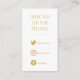 Tarjeta de recambio de texto de oro divertido para dar las gracias a sus clientes e incluirlos en su embalaje de pedido. La tarjeta tiene enlaces sociales de color oro. Si quieres que cambien los íconos sociales, por favor contáctame.
