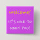 Características del este del cuadrado diseño del botón que los mensajes "acogen con satisfacción!" y "es AGRADABLE ENCONTRARLE!". Podría quizás ser utilizado como manera amistosa de saludar a gente en una conferencia, la reunión, o un cierto otro acontecimiento.
