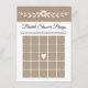 Tipografía y flores blancas simple papel kraft floral rústico boda ducha de novia tarjeta de juego bingo. Muestra una flor pequeña con hojas en blanco y un corazón en papel de estilo rústico kraft. En la parte trasera hay un patrón con flores pequeñas y hojas en blanco.