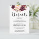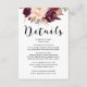 El sueño se encuentra con el rústico con esta floral tarjeta de detalles bodas de marsala burdeos. Añada su propio texto a la plantilla. Esta tarjeta forma parte de nuestra gama "Amelia & Ryan" - mira el rango completo de nuestra tienda!