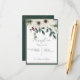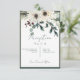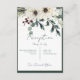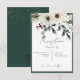 El diseño rústico de la tarjeta de la recepción para bodas incluye un alto ramo de pino, bayas rojas, flores blancas y eucaliptos con un toque de purpurina de oro falso. El fondo es blanco con un marco verde oscuro y fino. Este diseño forma parte de la Rustic Berries Winter Floral Boda Suite de tarjetas creadas por Simply Farmhouse Press.