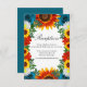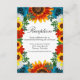 Elegante y colorido diseño floral para un evento de verano en el patio trasero. Presenta rosas azules verde azulados, margaritas blancas, flores silvestres rojas y girasoles