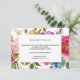 Diseñado para coordinar con nuestra colección de bodas Floral Spring Lush, esta tarjeta de cerramiento de recepción botánica elegante presenta un marco de flores pintadas con acuarela, en elegantes tonos de rosa, púrpura, lavanda azul polvoriento y verde.