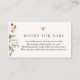 Una tarjeta de inserción para la ducha para bebés solicitada por un libro. Con flores silvestres con poema: "UNA PEQUEÑA PEQUEÑA PETICIÓN, ESPERAMOS QUE NO SEA DEMASIADO DIFÍCIL POR FAVOR TRAER UN LIBRO EN LUGAR DE UNA TARJETA QUE ELLOS PRESIONARÁN EL LIBRO, BIEN AMADOS O NUEVOS POR FAVOR, ¡RÓTULO EL INTERIOR CON UN MENSAJE DE USTED!"