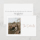Una tarjeta de detalles boda contemporánea con una foto personal en la parte delantera y un elegante diseño minimalista en todo el edificio. La parte delantera combina tu compromiso favorito o la foto de la pareja con "The Details" en un guión moderno escrito a mano, creando una cálida e invitante introducción a la información de tu evento. Al revés, se ofrece espacio para todos los detalles esenciales: recepción, alojamiento, lugar, contactos RSVP y sitio web, todo en un tipo clásico de sif para una lectura fácil. Esta tarjeta es perfecta para las parejas que deseen compartir información importante con los clientes en un formato elegante y organizado que complemente cualquier suite boda.
