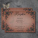Celebra tu amor en la grandeza del romance gótico con nuestra cautivadora tarjeta de recepción de bodas. Abran el oscuro encanto y la intemporal elegancia con nuestros negros bordes tridimensionales de esquina, envolviendo texto negro en negrita contra un vintage fondo de roya victoriano. Este diseño desprende un encanto misterioso, perfecto para las parejas que desean infundir su día de bodas con un aire de sofisticación dramática. Los detalles intrincados del marco filigree en el corazón agregan profundidad y textura, creando un punto focal fascinante que capta la esencia de tu única historia de amor. Como último toque de personalización, la parte posterior del diseño presenta el mismo marco de fondo de fibra de filigree adornado con las primeras iniciales de la pareja, añadiendo un toque sutil pero significativo a esta obra maestra gótica. Creado por Simply Farmhouse Press