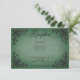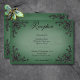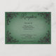 Celebra tu amor en la grandeza del romance gótico con nuestra cautivadora tarjeta de recepción de bodas. Abraza el encanto oscuro y la elegancia atemporal con nuestros bordes negros tridimensionales de esquina de fibra, envolviendo texto negro en negrita contra un vintage fondo verde esmeralda victoriano. Este diseño desprende un encanto misterioso, perfecto para las parejas que desean infundir su día de bodas con un aire de sofisticación dramática. Los detalles intrincados del marco filigree en el corazón agregan profundidad y textura, creando un punto focal fascinante que capta la esencia de tu única historia de amor. Como último toque de personalización, la parte posterior del diseño presenta el mismo marco de fondo de fibra de filigree adornado con las primeras iniciales de la pareja, añadiendo un toque sutil pero significativo a esta obra maestra gótica. Creado por Simply Farmhouse Press