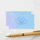 Personalizar esta tarjeta de marketing de negocios con gradiente de moda. Esto es perfecto para un negocio de comercio electrónico como una boutique, una tienda Etsy o cualquier otra pequeña empresa. Incluye la frase "Gracias por su negocio" y tiene un texto de personalizable para explicar más detalles. En el reverso se encuentra el logotipo de la flor de loto sana, inspirado en el bienestar del personalizado, que puede actualizarse o dejarse tal como está. Este producto expresa la apreciación del cliente y anima a los compradores a seguir su negocio en las redes sociales con la información proporcionada junto a los iconos de contacto de Facebook, Instagram y YouTube.