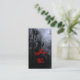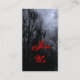 Un billete de evento tamaño tarjeta de visita para un personalizado o una invitación con letras de pistola en el fondo de un espeluznante cielo de Halloween con árboles nublados a lo largo de un oscuro camino embrujado, barrancos góticos y una nublada luna llena con una bruma azul. Personalizar Para cambiar fuentes, agregar texto, incluso guardar el diseño para más adelante.