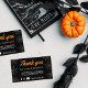Personalizar esta tarjeta de mercadotecnia de Halloween. Esto es perfecto para un negocio de comercio electrónico como una boutique, una tienda Etsy o cualquier otra pequeña empresa. Incluye la frase "Gracias por su negocio" y tiene un texto de personalizable para explicar más detalles. Este producto expresa la apreciación del cliente y anima a los compradores a seguir su negocio en las redes sociales con la información proporcionada junto a los iconos de contacto de Facebook, Instagram y YouTube.