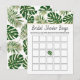 Láminas tropicales boda novia Ducha tarjeta de juego de bingo. Hermosas hojas de Split Leaf Philodendron (Monstera deliciosa) o planta suiza de queso y hojas de palma en verde con contorno dorado adornan esta encantadora tarjeta de juego de bingo matrimonial.