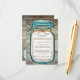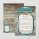 Tarjetas de instrucciones de boda rústica en madera de Mason Jar para ser utilizadas para direcciones o alojamiento para incluir con sus invitaciones de boda. Tarjeta rústica de Mason Jar con un acento azul teal en un fondo de madera de granero impresa.