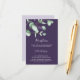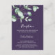 Esta rústica tarjeta de inserción de lavanda violeta en la recepción es perfecta para un boda al aire libre sencillo y elegante. El diseño floral incluye hojas de eucaliptos acuáticas y vegetación con brotes de flores violetas sobre un fondo de ciruela morada. Personalice esta tarjeta de gabinete de detalles con su información de recepción e incluya también la dirección de su sitio web boda.