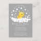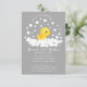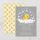 Pato adorable rodeado de burbujas sobre un fondo gris oscuro para una ducha de bebé neutral. Voltea nuestro diseño dulce para ver la parte trasera de un pato coordinado para un toque extra especial. Visita nuestra tienda para ver artículos de ducha a juego.