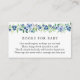 Una tarjeta de inserción para la ducha para bebés solicitada por un libro. Con un borde de arándanos y vegetación con poema: "UNA PEQUEÑA PEQUEÑA PETICIÓN, ESPERAMOS QUE NO SEA DEMASIADO DIFÍCIL POR FAVOR TRAER UN LIBRO EN LUGAR DE UNA TARJETA QUE ELLOS ENCANTARÁN EL LIBRO, BIEN AMADOS O NUEVOS POR FAVOR, ¡RÓTULO EL INTERIOR CON UN MENSAJE!"