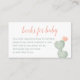 Bonita tarjeta de alojamiento Books For Baby con temática desértica. Hágale saber a los clientes que están solicitando un libro en lugar de una tarjeta. El ilustracion de cactus acuático es delicado, en tonos rosas y verdes. Coincide perfectamente con la Invitación Baby Shower de Oh Baby Cactus en esta colección. Perfecto para un boho o una moderna ducha de bebé al suroeste. Seleccione el botón "Personalizar" para añadir su propia redacción.
