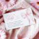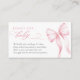 Animar a los clientes a traer una historia dulce en lugar de una tarjeta con esta tarjeta de bebé color rosa. Diseñado con una cinta delicada y una escritura romántica, este prospecto le aporta un ambiente suave y caprichoso a su ducha de bebé. Un detalle sincero para completar tu celebración de temática rosada.