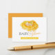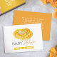 Bebé caprichoso pintado a mano en flor mantequilla caliente color amarillo y naranja tonos bebes libros de ducha para tarjeta de bebé. Perfecto para que usted solicite libros y para hacer el regalo especial petición y mensaje dentro de sus invitados. Cuadros de acuarela de mano caprichosa de un lindo bebé con un arco enclavado en una flor de color amarillo al estilo de las marismas, arte y diseño de Sarah Trett exclusivamente para www.mylittleeden.com en Zazzle.