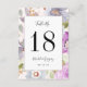 Elegantes cartas con un fondo de color de agua floral de lila, suave rosa y flores grises. Introduzca el borde de malla silenciada con fondo blanco para los mensajes. Personalizar esta tarjeta de número de tabla con su fecha de boda personalizada, nombres y números de tabla. El diseño de la parte trasera es el mismo y el lado delantero. Diseñado para coordinar con nuestro conjunto de colección de bodas florales Lilac Blooms.