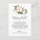 Este elegante boda blanco magnolia que desea una buena carta es perfecto para un boda moderno y elegante. El diseño floral suave incluye peonías de color agua rosado, magníficas flores de magnolia blanca y algodón con hojas doradas y verdes en un arreglo lujoso. Personalice esta tarjeta de invitación con sus nombres y un poema corto que desee bien.