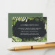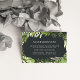 Desliza estas modas, tarjetas pequeñas en tus invitaciones nupciales para que los huéspedes conozcan los arreglos de hoteles o códigos de grupo. Diseñadas para coordinarse con nuestra colección de bodas Midnight Garden, las tarjetas cuentan con letras blancas con un borde botánico de vegetación en tonos acuarelas de helecho y verde bosque sobre un elegante fondo oscuro.