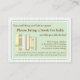 Un poema con encanto pide a los clientes que traigan un libro para el futuro bebé para empezar a dejar a la nueva madre con una biblioteca de libros para niños queridos. Sólo inserte esta tarjeta dulce dentro del sobre de la ducha para bebés. La combinación de colores neutros verde, amarillo y blanco con una bonita hilera de libros a juego hace que el diseño sea perfecto para coordinarse con cualquier invitación a una ducha de bebé verde o amarillo.