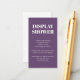 Esta pequeña tarjeta es perfecta cuando se solicita una invitación especial para una ducha de bebé o de novia. El fondo es morado oscuro con texto blanco.