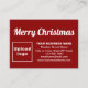 Feliz Navidad! Una de las fiestas más celebradas del año. También es una de las mejores temporadas para promocionar su negocio o promocionar su marca a clientes o clientes. Tarjeta de inscripción que usted puede personalizar para poner su marca de negocio y con el saludo de los Navidades. Personalizar y úselo para saludar a sus clientes o clientes este Navidad y como material de marketing para promocionar su negocio o promocionar su marca. También puede utilizarlo como accesorio del material de embalaje de su producto. Tarjeta de gabinete de personalizable que se puede utilizar para crear conciencia de nombres de marca. Tarjeta de inscripción para diciembre o Navidades en julio. Los colores de diseño son textos blancos sobre fondo rojo. Para personalizar de esta tarjeta de gabinete, suba el logotipo de tu empresa, escribe tu nombre de negocio, dirección, número de teléfono, correo electrónico y sitio web o tu página de red social de tu empresa. Por favor, compruebe la apariencia en los lados delantero y trasero después de cargar el logotipo y escribir textos. Si la apariencia le resulta agradable, puede realizar su pedido ahora. Si necesita cambiar el tamaño y mover el logotipo y los textos para que encajen en esta tarjeta de gabinete o en el tamaño que elija, cambie la herramienta de diseño. También puede cambiar el color de fondo, el color de fuente y el estilo de fuente en la herramienta de diseño. Feliz Navidad! Te deseo más ventas esta fiesta.