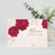 Bride en flor tema de la ducha de novia tarjeta de gabinete incluye rosas y peonatos de color rojo, rosa y marrón con un patrón dorado floral y botánico.Un fondo de color dorado y blanco roto con roses rojos arreglos florales