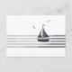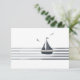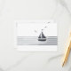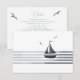 Podrá navegar para su día especial con esta tarjeta de detalles bodas, que incluye un elegante ilustracion de un velero adornado con rayas náuticas y acompañado de gaviotas elegantes. Esta tarjeta, que combina una paleta de color gris azulado con el encanto de la costa de Nueva Inglaterra, ofrece información boda esencial con un toque de elegancia marítima.