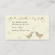 Mi diseño de ilustracion vectorial "Aves amorosas Bodas" está en la tarjeta de negocios personalizado. Es genial como un inserto en la tarjeta de agradecimiento para la pareja recién casada para anunciar su nueva dirección. Es totalmente personalizable haciendo clic en el botón "¡Personalizar!". ¡Siéntase libre de cambiar texto, tipo de letra, tamaño y añadir y borrar información como quieras! Versión rosa, tarjeta de invitación, postal, más productos con este diseño están disponibles en mi tienda! Por favor, busque "Aves de Amor Boda" en la casilla de búsqueda de productos.