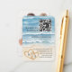 Dirige a los huéspedes a su sitio web boda con esta tarjeta de recinto temática de la playa, con olas de acuarela, corazones arenosos y un escandaloso código QR. Un toque moderno para bodas de destino y ceremonias frente al mar, perfecto para compartir enlaces RSVP, detalles de eventos o registros.