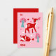 Esta pequeña tarjeta El día de San Valentín es perfecta para los niños con sus ilustraciones de ciervos rojos con manchas blancas en forma de corazón. Esta tarjeta de panel plano está diseñada para que el cliente escriba sus propios nombres en los campos "A" y "Desde".