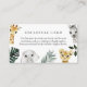 Personalizar esta tarjeta de gabinete para sus necesidades. Excelente para detalles, información del registro, alojamiento de hotel, etc. Cuenta con animales de safari acuáticos y hojas de selva tropical. Perfecto para una ducha de bebé o un cumpleaños.