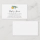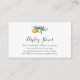 Una tarjeta de inserción en la ducha para una pequeña ducha con tema de cítricos. Presentando una pequeña clementina y poema de naranjas cortitos: "Tu hermoso regalo será puesto en exhibición, así que no hay necesidad de envolverlo de ninguna manera. Un regalo sin envolver es igual de dulce, y ahorrará más tiempo para mezclarse y comer".