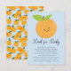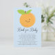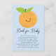Una pequeña cubata está en el camino de la ducha para bebés con un adorable naranja de clementina sobre un fondo azul claro. Visite nuestra tienda para ver nuestra adorable colección de diseño de cutis