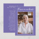 Esta elegante tarjeta periwinkle y blanca "para siempre en nuestros corazones" de oración conmemorativa de fotos es una hermosa manera de recordar a un ser querido durante la celebración de la vida o el servicio funerario. Esto hace un lindo conservador que puedes mostrar en tu casa después.