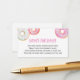 Una tarjeta de inserción para la ducha para bebés solicitada por un libro. Con donuts rosados y poema: "UNA PEQUEÑA PEQUEÑA PETICIÓN, ESPERAMOS QUE NO SEA DIFÍCIL POR FAVOR LLEVAR UN LIBRO EN LUGAR DE UNA TARJETA QUE ELLOS PRESIONARÁN EL LIBRO, BIEN AMADOS O NUEVO POR FAVOR RÓTULO EL INTERIOR CON UN MENSAJE."