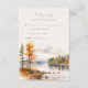 Fije el tono para su boda de otoño con esta romántica tarjeta RSVP, que presenta un sereno lago y una escena montañosa sobre la huella de lino rústico. Perfecto para bodas al aire libre, elopements de otoño o bodas de destino junto al agua. Personalizable con sus nombres, fechas y ubicación - parte de nuestra colección de Bodas Caídas de una suite de papel coordinada.