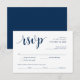 Tarjeta RSVP de Boda Rustica Moderna, en Fuente Azul Marina, con opciones de comida y reserva de número de asiento.