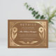 Tarjeta de detalles del Boda SOLARA III : Tarjeta de envoltorio de Boda botánico Minimalista Faux Gold sobre papel de kraft oscuro. Obra de arte original de la diseñadora en un estilo Art Decó Nouveau. De la mayor colección de Bodas SOLARA III. Imprime como se muestra. Colorido vibrante y hermosa calidad.