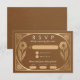 Tarjeta RSVP de Boda SOLARA III : Tarjeta Faux Gold Minimalista Boding RSVP sobre fondo gráfico de papel kraft oscuro. Obra de arte original de la diseñadora de estilo Art Nouveau. De la suite Boda SOLARA III más grande. Imprime como se muestra.